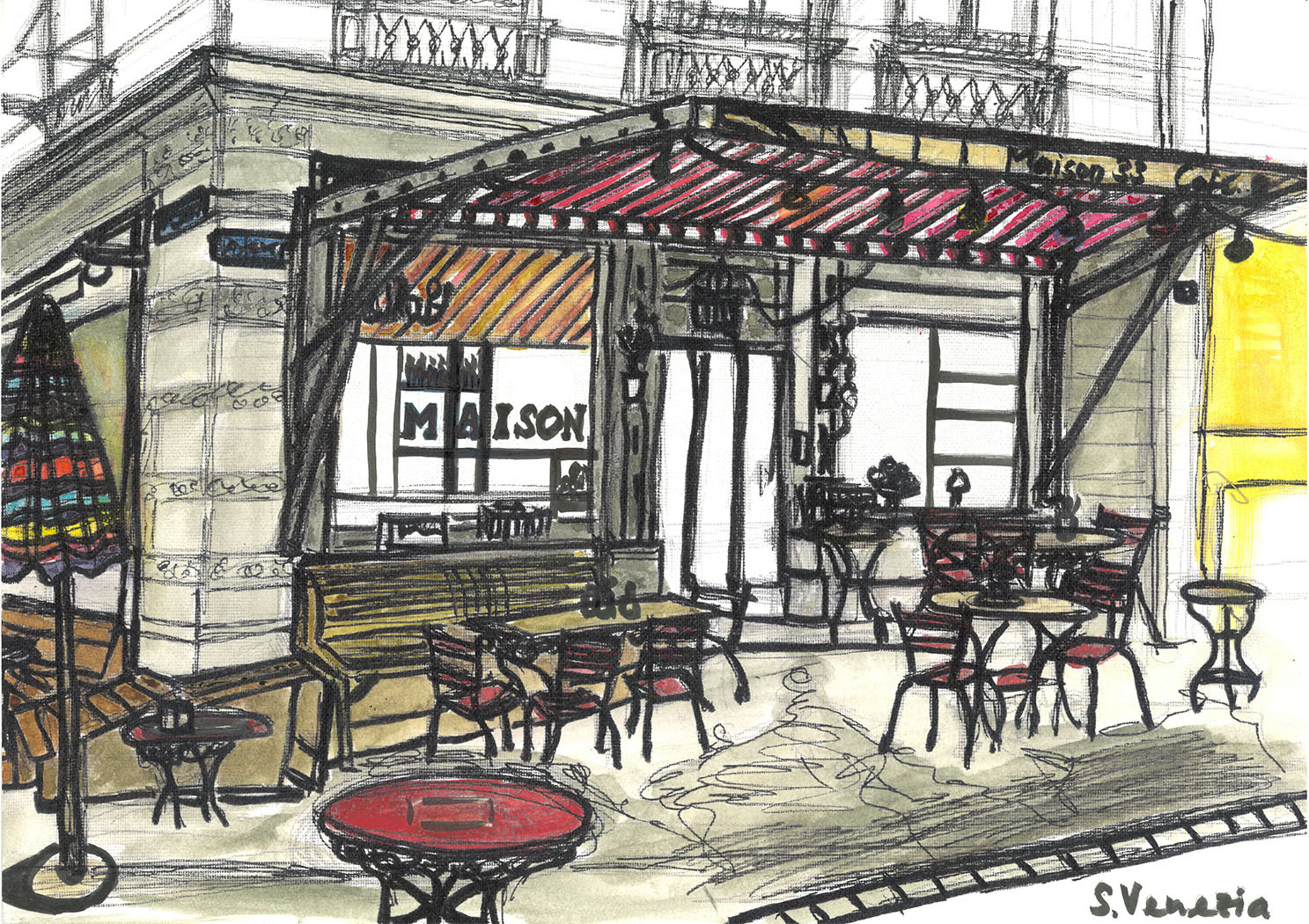 Auftragsarbeiten – Wenn ich unterwegs am Sketchen bin, habe ich immer span- nende Begegnungen mit Menschen die vorbeigehen. So ent- stehen spontan Aufträge, Zusammenarbeiten. Kinder schauen die Zeichnungen an und studieren wie ich zeichne und geben Kommentare über die Zeichnung ab – Erwachsene sprechen mich an und möchten wissen woher ich komme, für wen ich skizziere – Ladenbesitzer und Restaurantbesitzer kommen und schauen mir über die Schultern, sind begeistert von der frischen Zeichnung. So trete ich mit vielen Menschen in Kontakt und es werden Wünsche formuliert, Bestellungen, Aufträge notiert. Als ich z.B. vor Weihnachten eine Hausfassade malte, wünschte sich der Hausbesitzer diese Zeichnung für seine Frau als Geschenk. Als ich das Lokal im Seefeld skizzierte, fiel dies auf und ein Geschäftsinhaber wünschte sich auch eine Zeichnung. Diese Begegnungen berühren gegenseitig, machen Freude. Es ent- stehen einmalige, kräftige, kunstvolle Momentaufnahmen eines gewählten Sujets, Hauses oder Wohnung. Und so ist die Kunst auch bei den Lovers angekommen, durch ihre Resonanz, ihren Beitrag wird sie komplett: Die Kunst der Aneignung! How about you ? möchtest du dein Haus, deine Wohnung so sehen? Auftragsarbeiten sind willkommen. Architektur-Lovers are welcome.