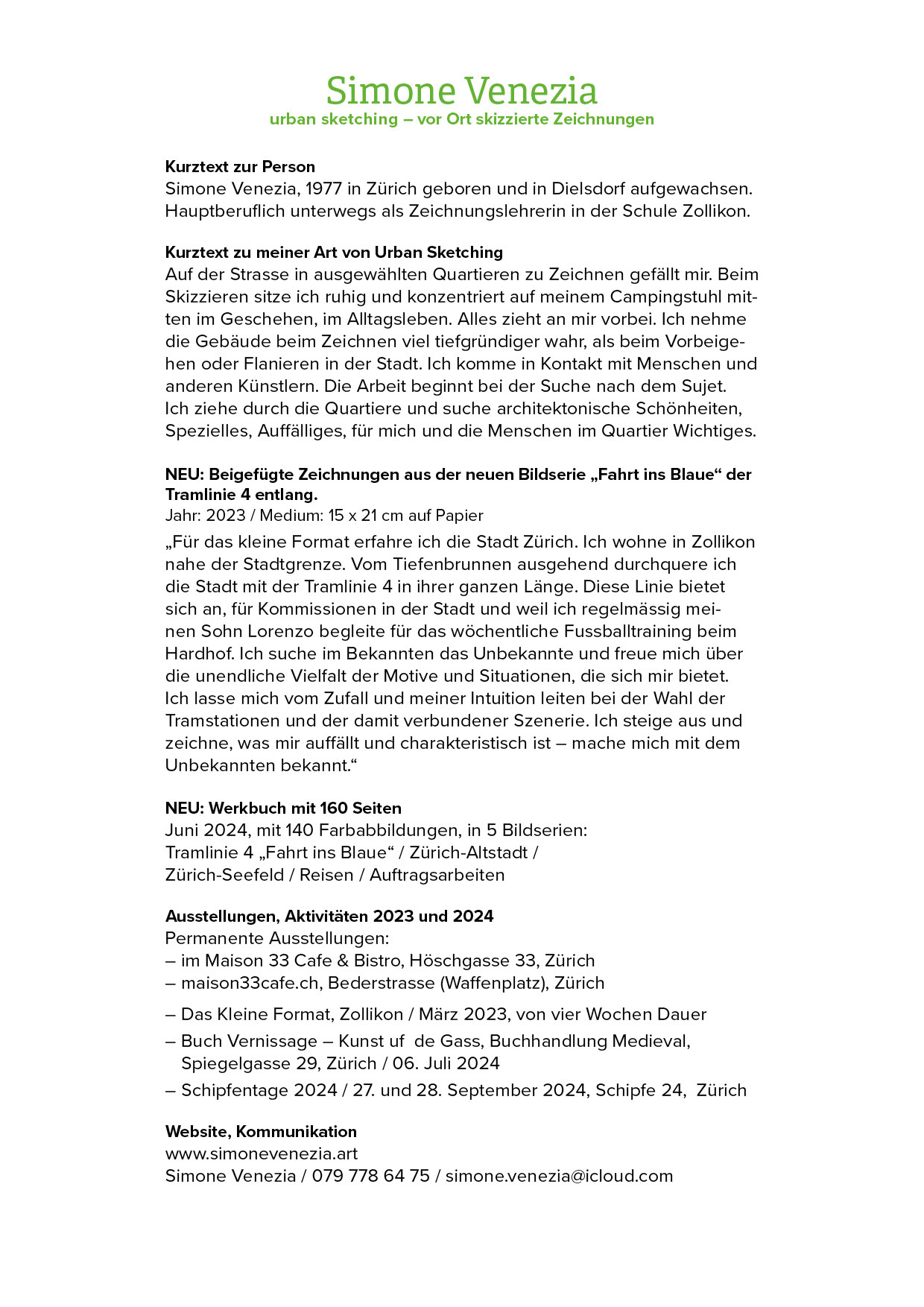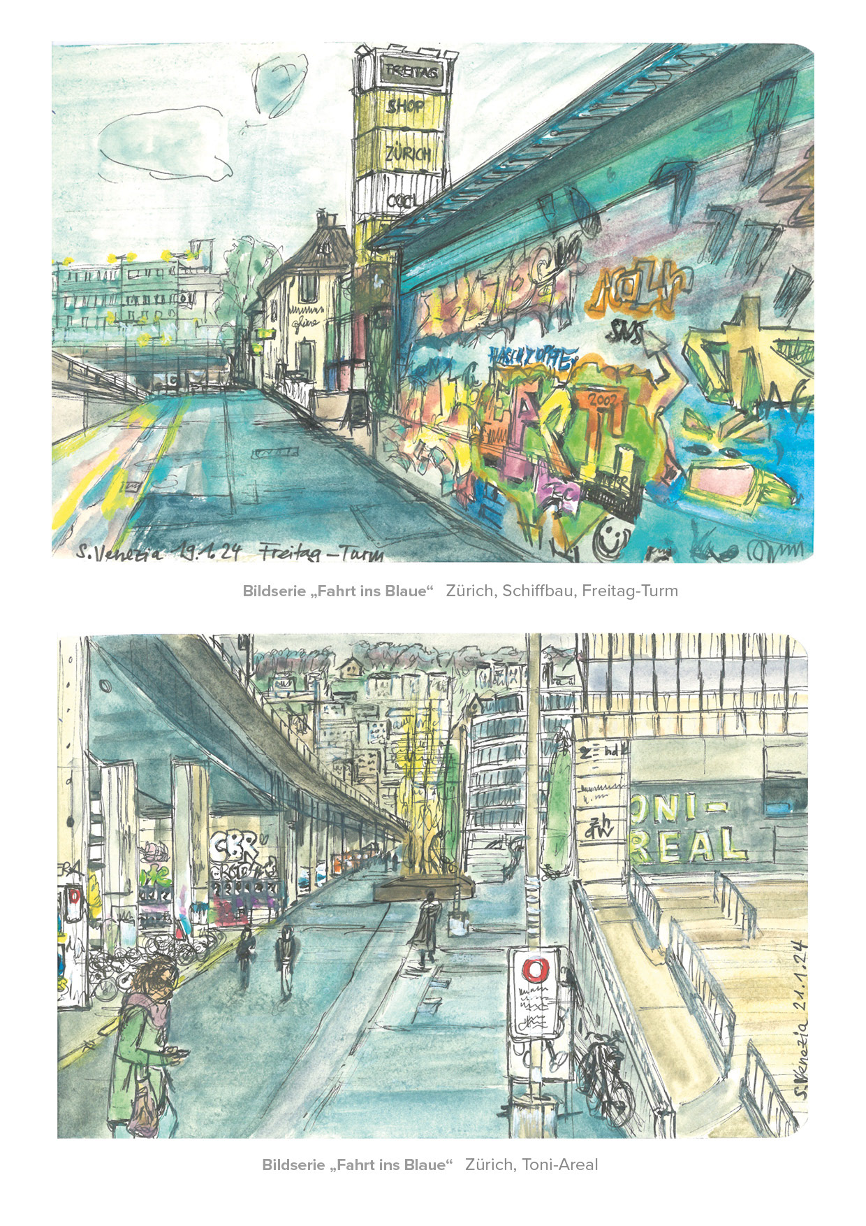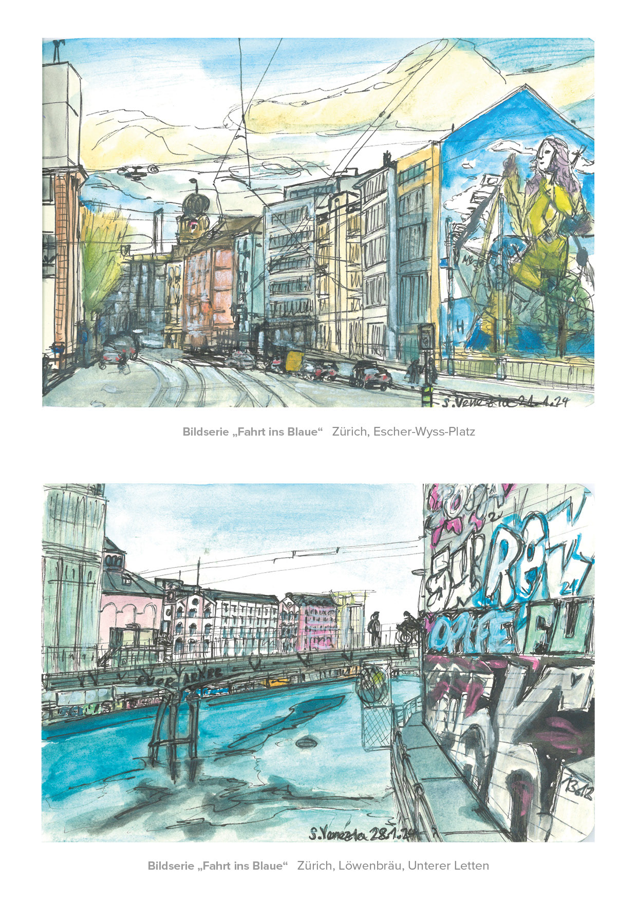 Kunstkatalog mit 240 Farbabbildungen, Juni 2024, mit fünf Bildserien, Tramilinie 4 "Fahrt ins Blaue" / Zürich-Altstadt / Zürich-Seefeld / Reisen / Auftragsarbeiten