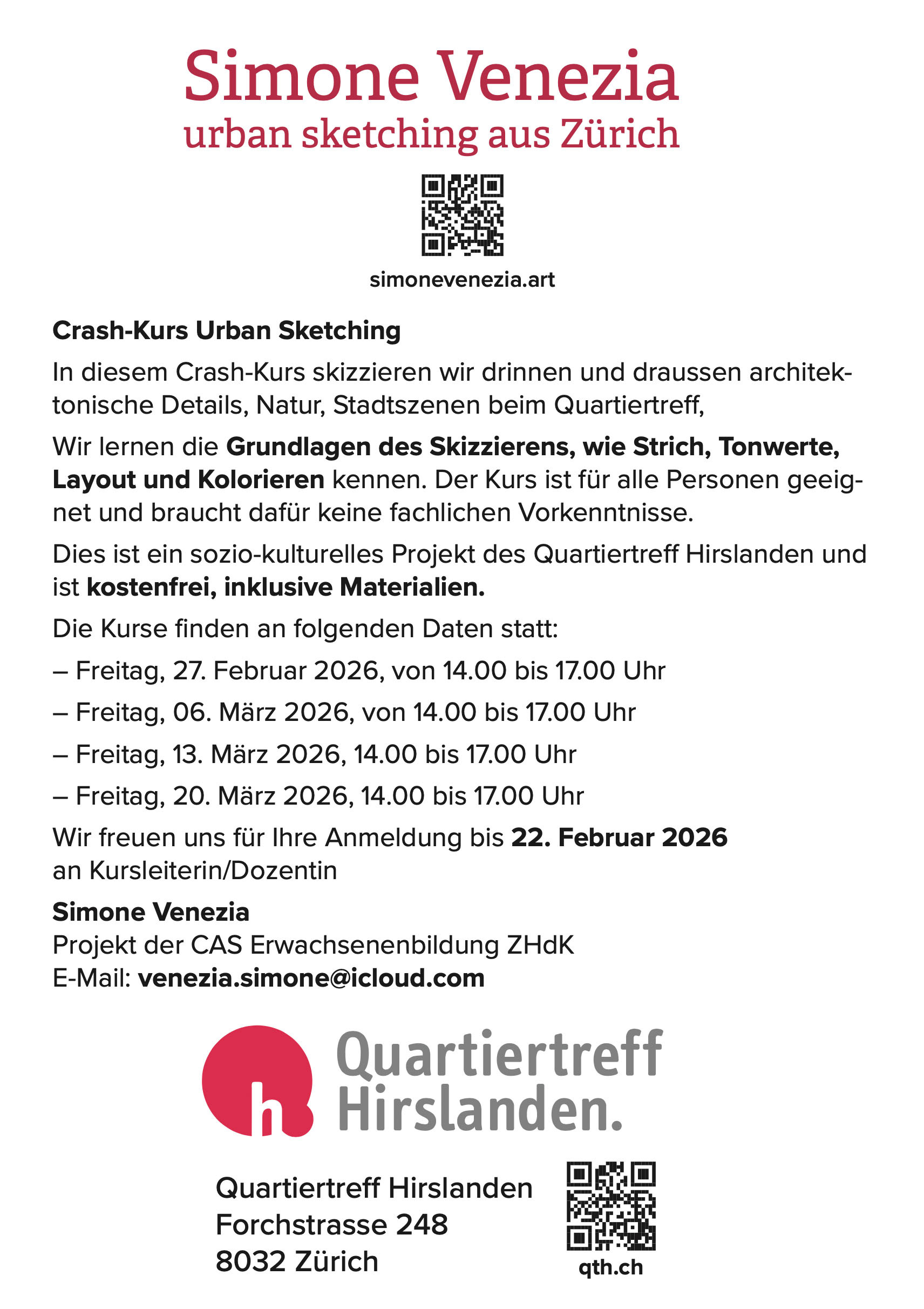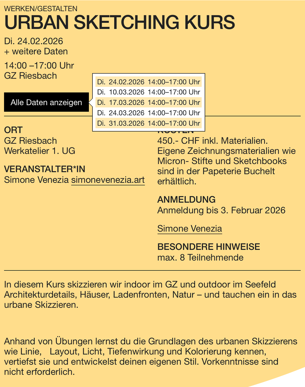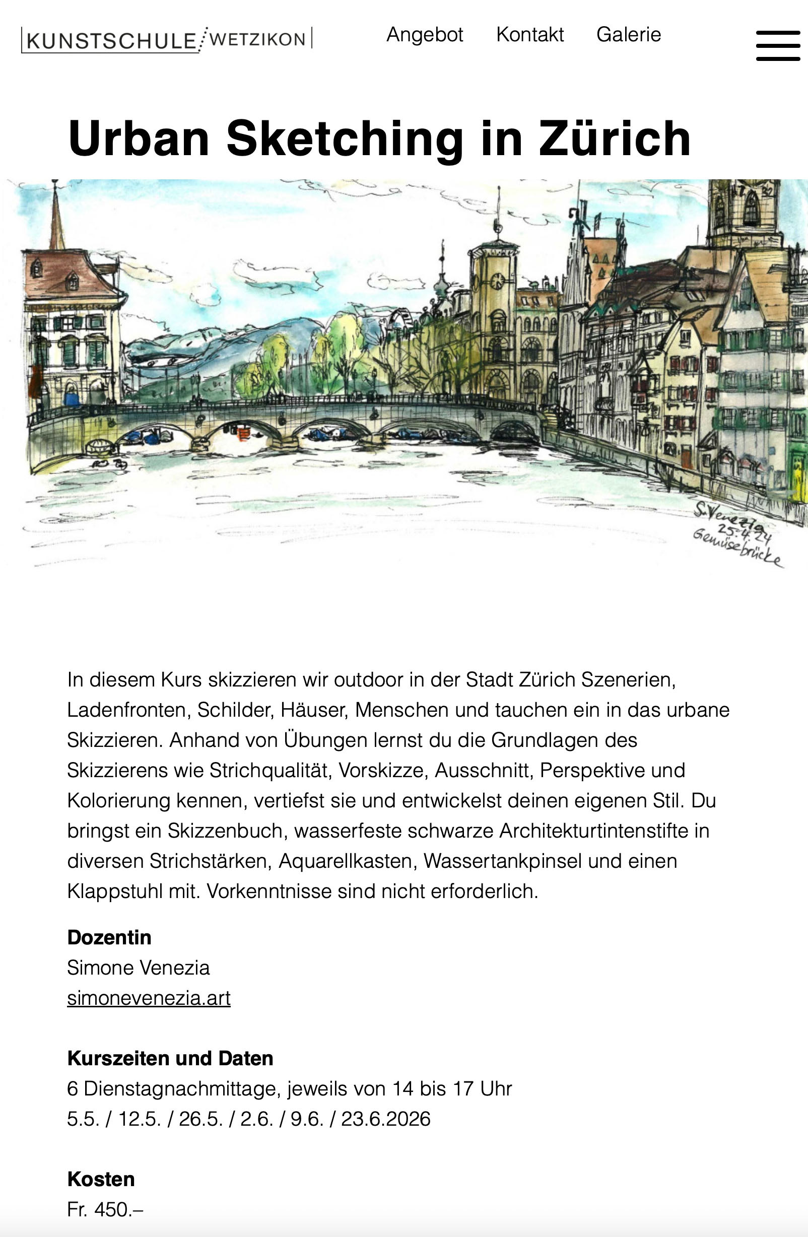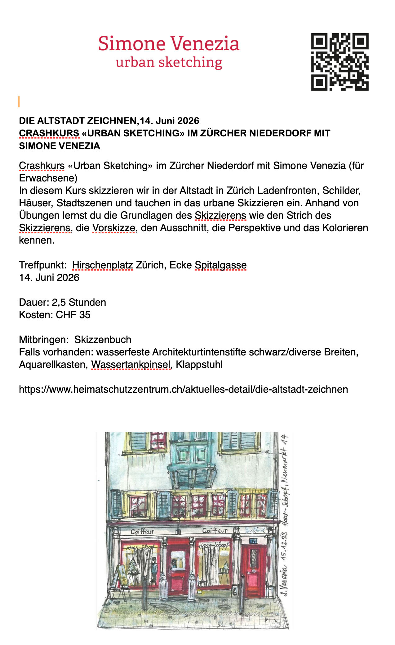 Urban Sketching Kurs in Zürich von Mai bis juni 2026